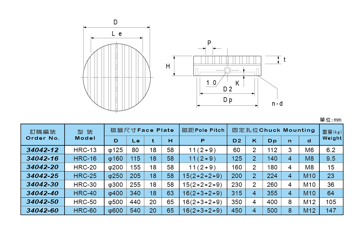 ● 可安裝在旋轉研磨機器使用.● 適合作一般的工件,精密研磨加工.● 殘留磁性低,可提昇薄工件的研磨精密度.● 可適度的調整磁力強弱.● φ400以上為雙開關。